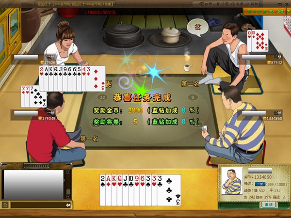 2、玩家依次轮流出牌,后一家出的牌必须大于前一家出的牌,如果没有就可以选择放弃。