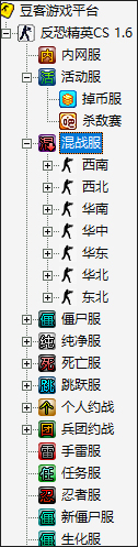 3、注意左边的侧边栏,这里有各种CS的游戏模式可以选择,一般来说,混战服,死亡服,僵死服,纯净服和跳跃服都是很热门的。