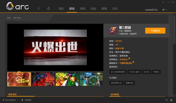 点击Arc客户端上方导航栏的"游戏"按钮,进入到游戏大厅,点击游戏列表logo图片,进入该游戏的详情页。