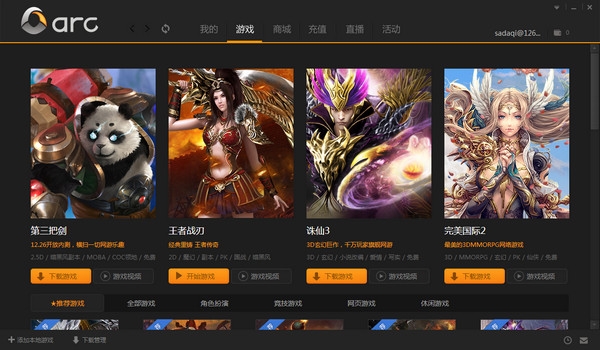 点击Arc客户端上方导航栏的"游戏",进入到Arc游戏大厅,选择你所喜爱的游戏!