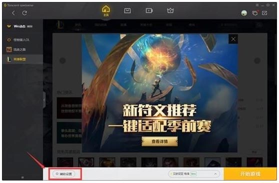 1、辅助设置:在【开始游戏】左侧,找到【辅助设置】按钮,点击即可设置