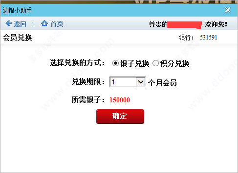 注:每15万两银子可定制一个月边锋会员,一旦定制成功,该月内无法退定。