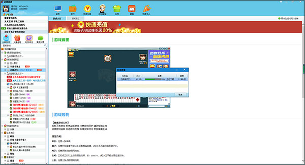 边锋游戏大厅电脑版是一款由官方打造的游戏平台,提供各种棋牌游戏,深受玩家喜爱。这里不仅有斗地主、麻将等经典游戏,还有丰富的休闲娱乐选择,吸引了不少发烧友。平台为玩家记录胜负和数据,并根据胜率设定级别和积分,增加游戏趣味性。