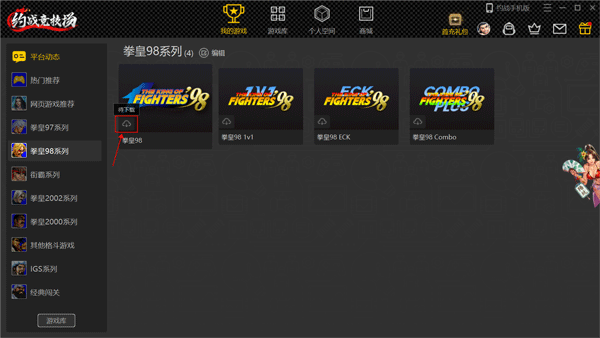 2、例如拳皇98系列,并在系列中选择你要下载的游戏,并点击待下载按键