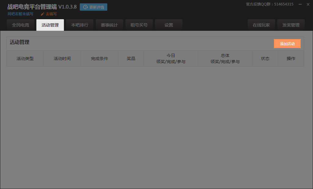 1、点击顶部【活动管理】按钮,找到页面中右侧【添加活动】按钮