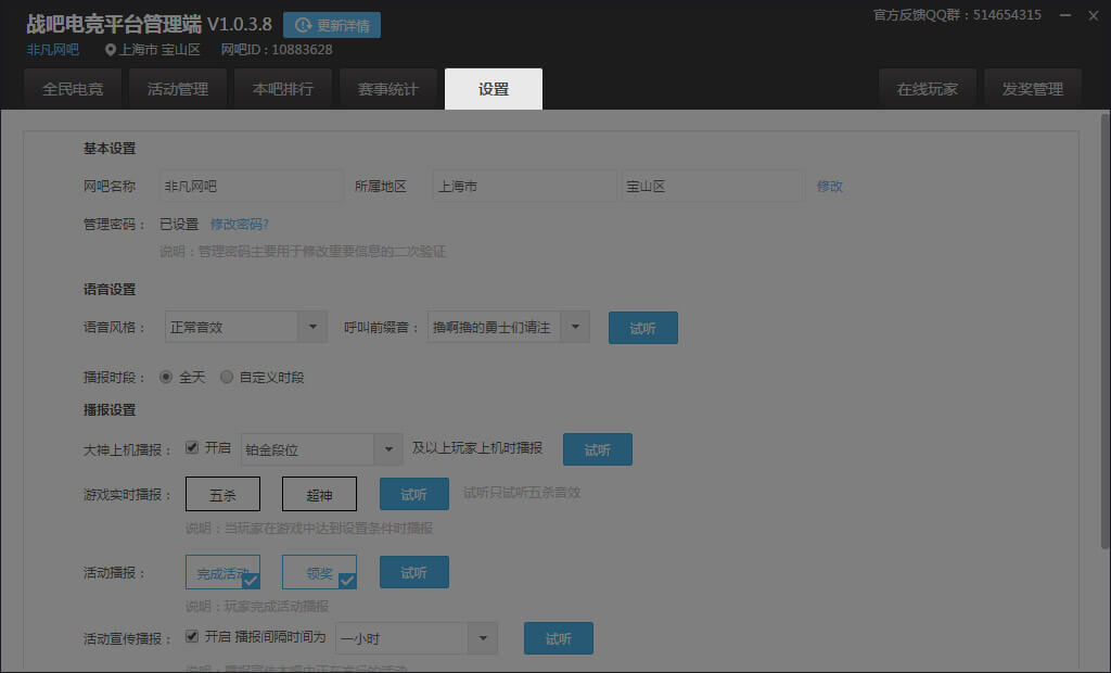 安装和使用起来也挺简单的,分语音端和管理端两部分,按照步骤操作就行。如果你是网吧老板或者电竞爱好者,这个平台绝对值得一试,功能齐全又方便,还能吸引更多玩家来玩。
