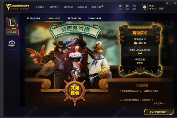 玩家在这里可看到各项赛事,战吧电竞平台希望提供给广大玩家更丰富多样的玩法,推出了多种比赛模式,如KDA争夺战、推塔专家等特色赛事。玩家点击赛事即可查看比赛规则及奖励设置,符合参赛条件即可一键报名参赛,无需填写繁琐的报名信息,就可即刻开战!
