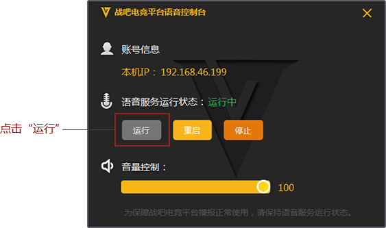 3、点击运行按钮,下方可控制音量,请保持该控制台的开启状态。(如使用过程中语音有问题,可尝试重启控制台)