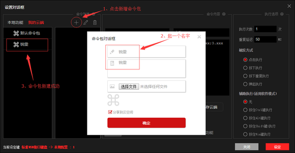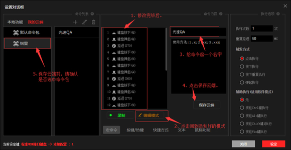 第七步:修改完延迟和编辑好命令后,给命令起一个名字并保存到云端。