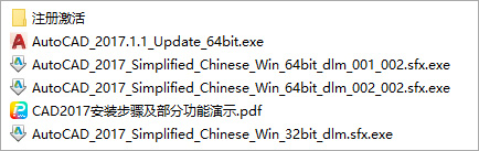1、下载解压,得到autodesk autocad 2017中文免费版,含64位和32位,以及相应的注册机及序列号密钥;