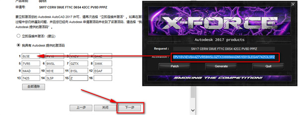 8、点击“I heve an actvaton.......”将生成的激活码复制到入内,点击NEXT
