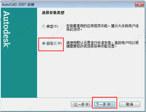 11、文字编辑器选择【记事本】,勾选【在桌面上显示AutoCAD2007快捷方式】,点击下一步;