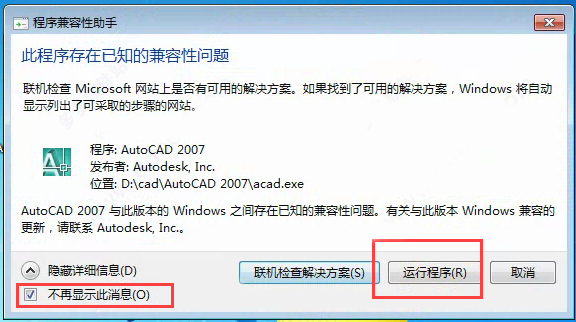 2、运行“双击我安装cad2007”如果出现如下提示,点击运行即可;