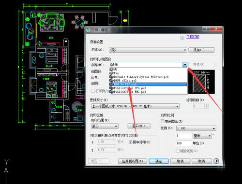 7、可以看到要选择打印的范围,选择-平面布置图。