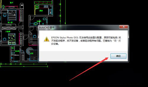 3、出现cad警告,单击确定进入。