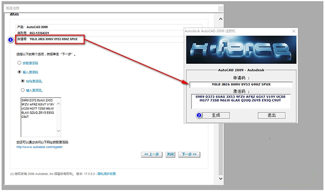 5、申请码复制到注册机上,然后生成序列号,将序列号复制到对应的位置,然后选择下一步;