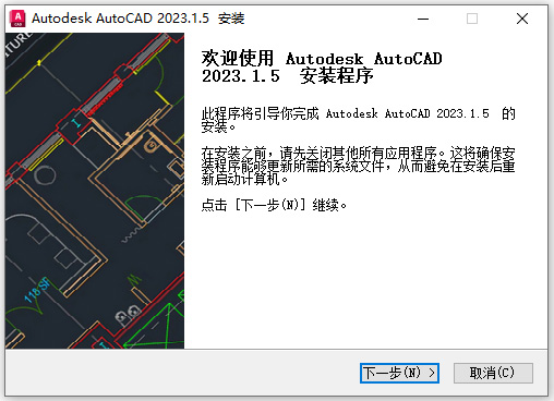 2、双击文件“AutoCAD_2023.1.5_x64_Lite.exe”依提示安装;