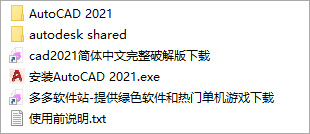 1、下载并解压解压即可得到cad2021绿色精简版文件;