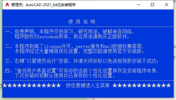 2、双击“安装AutoCAD 2021.exe”首次运行等待时间会有点漫长,因为会自动为用户设置安装环境;