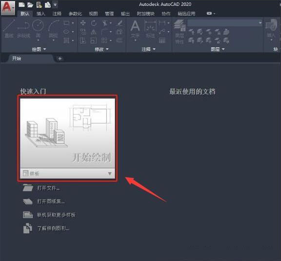 1、打开桌面CAD2020软件,点击开始绘制;