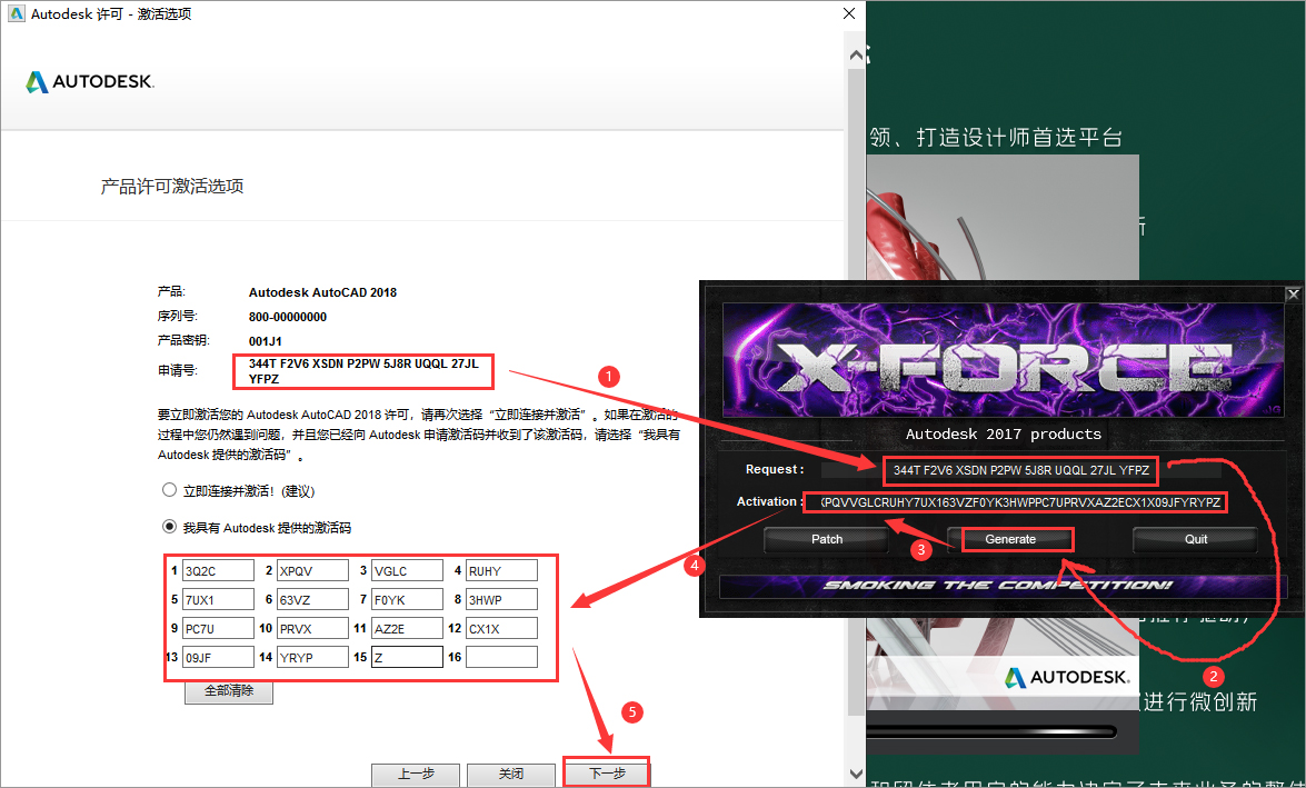 9、点击“我具有Atutodesk提供的激活码”将生成的激活码复制到入内,点击NEXT