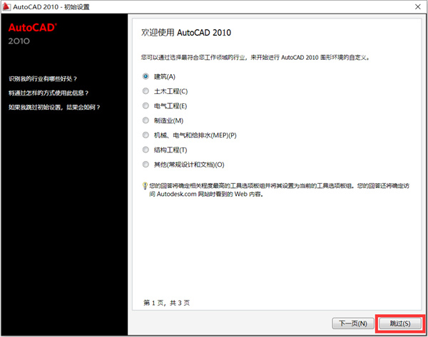 11、打开软件,对autocad2010进行初始设置,选择和你相关的工作领域,小编选“建筑”;