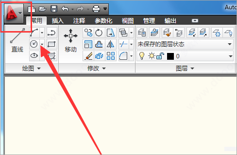 1、没有设置之前页面的背景是白色的,在CAD的页面点击左上角的打开设置按钮。