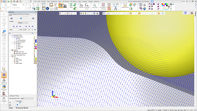 8、此外,显示刀具路径节点的功能提供了宝贵的可视化能力,帮助CAM用户预测精加工刀具路径的质量,特别是在使用精细表面质量选项时。此外,刀具路径模拟器的计算时间也得到了显著改善,使生产率平均提高了30%以上。