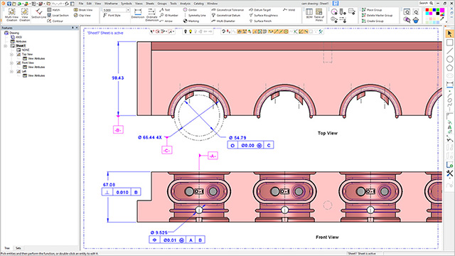 3、CAD用户还将享受到2D绘图的许多新功能,如导入PDF作为真实几何体和文本、新的最小距离尺寸标注、增强的符号以及改进的几何基准和公差(GD&T)。