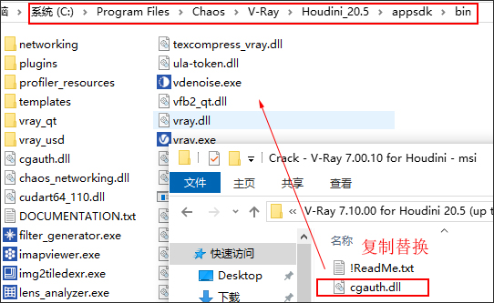 拷贝cgauth.dll到软件安装目录【C:\Program Files\Chaos\V-Ray\Houdini_20.5\appsdk\bin】