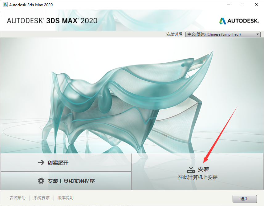 1、下载软件压缩包文件,得到autodesk 3ds max 2020简体中文版,以及注册机序列号密钥,首先将压缩包解压到本地,将自动弹出安装向导界面,选择【安装】选项