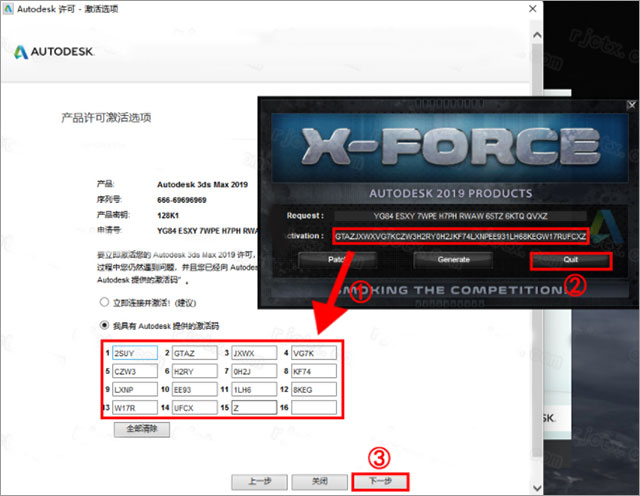 12、点击“I heve an actvaton.......”将生成的激活码复制到入内,点击NEXT