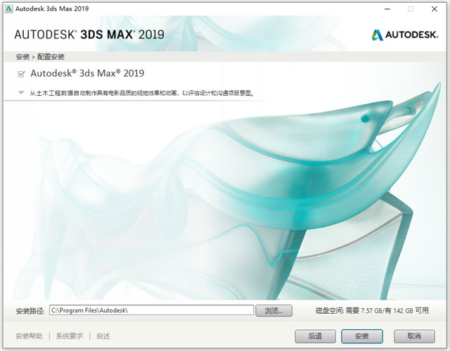 5、选择3ds Max2019的安装功能以及安装目录,点击“安装”