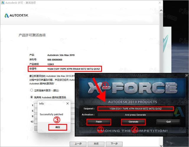 11、将“申请码”复制到注册机的第一项中,点击“Generate”,生成激活码