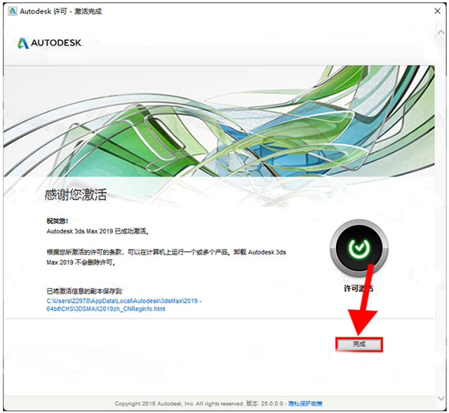 13、即可提示激活成功,以上就是3dmax2019中文破解版的详细安装教程。
