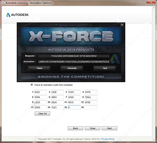 8、现在就可以复制激活码到激活界面,并点击下一步。这样就完成了Autodesk产品的注册了。