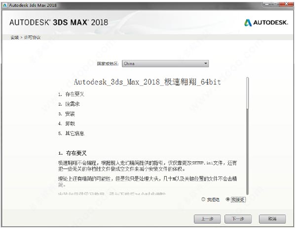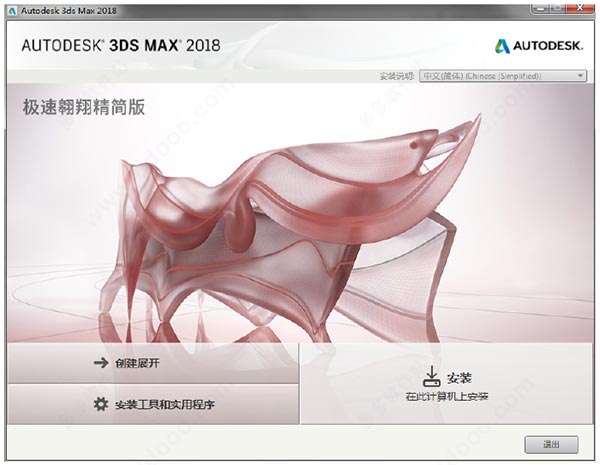 2、下载解压,双击文件“Autodesk_3ds_Max_2018_极速翱翔精简版.exe”开始安装;