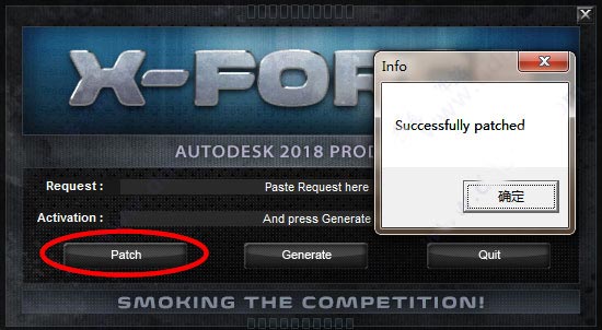 6、点击注册机界面上的Patch(即破解),此时会看到successfully patched(成功破解)。