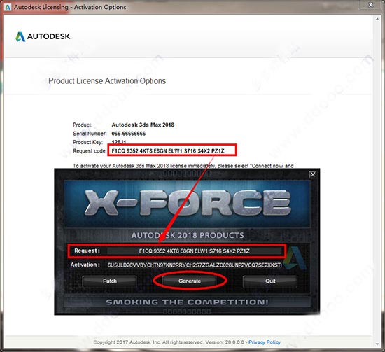 7、复制请求码(request code)到注册机并点击generate(生成)。