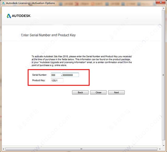 5、输入3dmax2018序列号“066-066666666”,输入密钥“128J1”