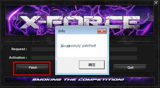 10、打开软件包中的注册机,先点击“patch”弹出“successfully patched”;