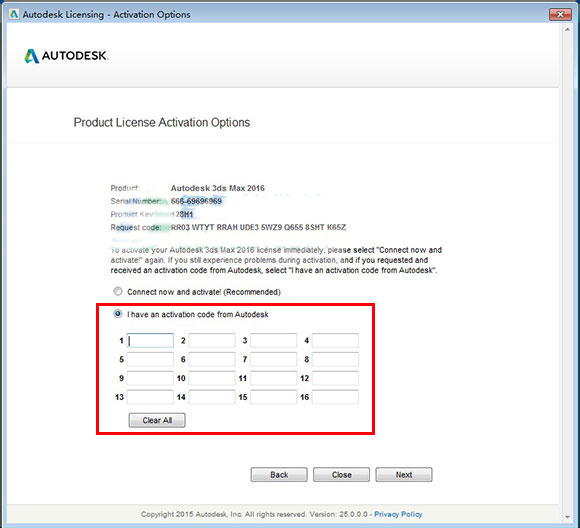 9、选择“i have an activation code from autodesk”,如果没有此选项,可点击back,再点击Activate;