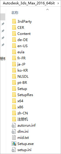 1、在本站下载压缩包解压后,得到autodesk 3ds max 2016中文版,以及注册机序列号和密钥,双击3dMAX2016的Setup.exe运行。