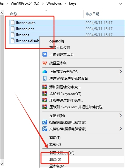 2、删除C:\Windows\keys里面的文件,如果没有可跳过这一步;