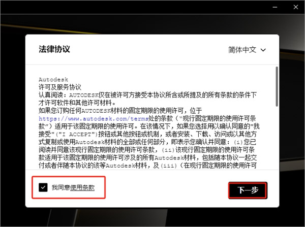3、勾选“我同意使用条款”;