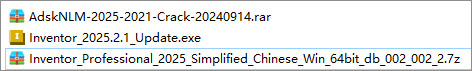 1、下载解压,得到autodesk inventor professional 2025中文版和crack通用激活补丁;