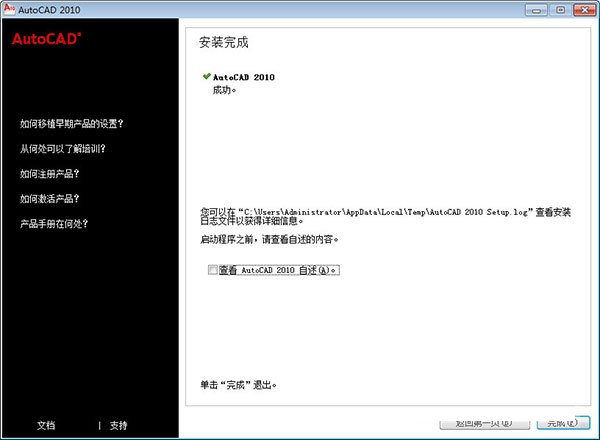 18、点击完成按纽后,软件已经成功激活,现在你拥有了一个完全免费的autocad2010 32位版本啦。