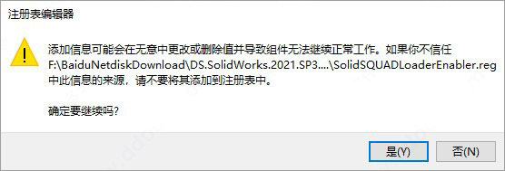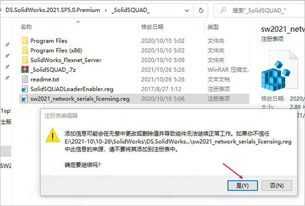 4、双击破解工具中的sw2021_network_serials_licensing.reg,导入注册表信息;