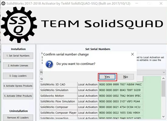 5、然后点击“Accept Serial Numbers”按钮,弹出选项选择“是”