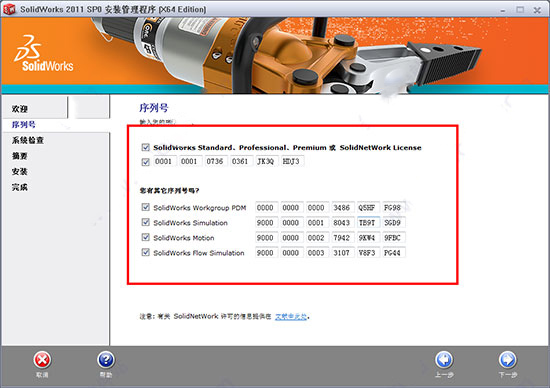 2、输入SOLIDWORK2011序列号:
